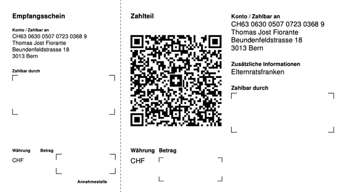 Der Elternratsfranken kann mit folgenden Angaben einbezahlt werden: